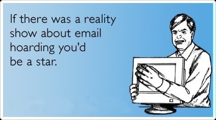 So, I confess that I am an e-mail hoarder. I rarely delete anything. I am not even sure what the compulsion is to keep it all? Some might say that they need to keep documents for work purposes; others don’t want to get rid of information because it feels as though you are getting rid of some vital digital document that you would kick yourself later for trashing.